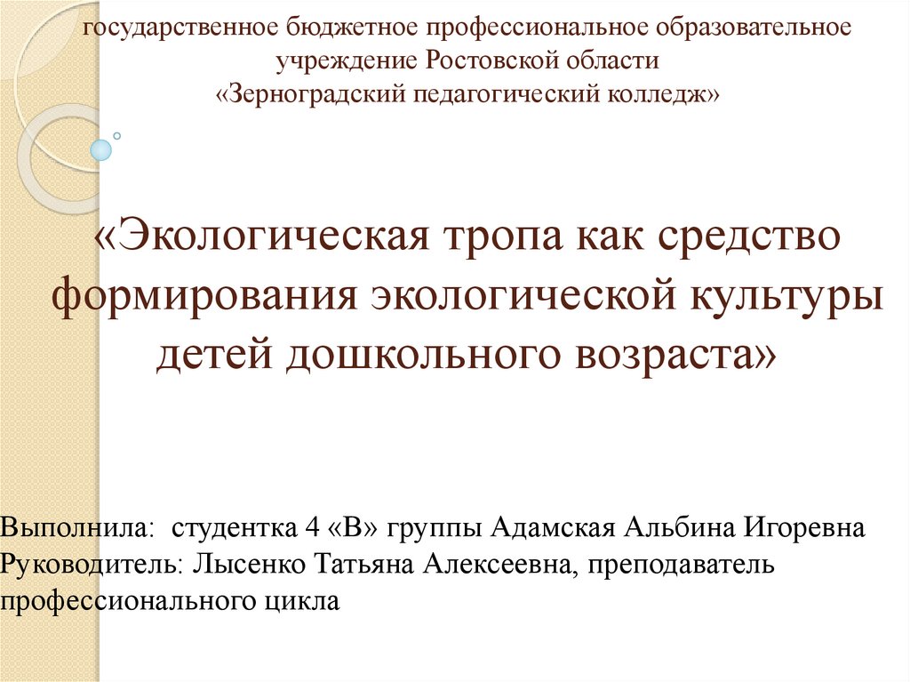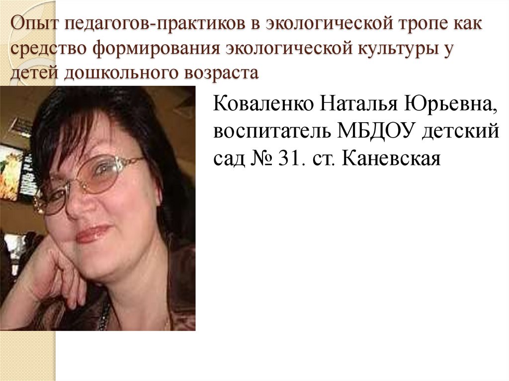 Опыт педагогов-практиков в экологической тропе каксредство формирования экологической культуры у