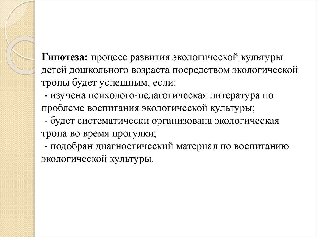 Гипотеза: процесс развития экологической культурыдетей дошкольного возраста посредством экологической