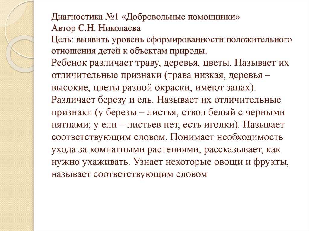 Диагностика №1 «Добровольные помощники»Автор С.Н. Николаева