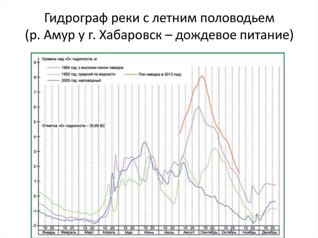Гидрограф реки с летним половодьем(р. Амур у г. Хабаровск – дождевое питание)