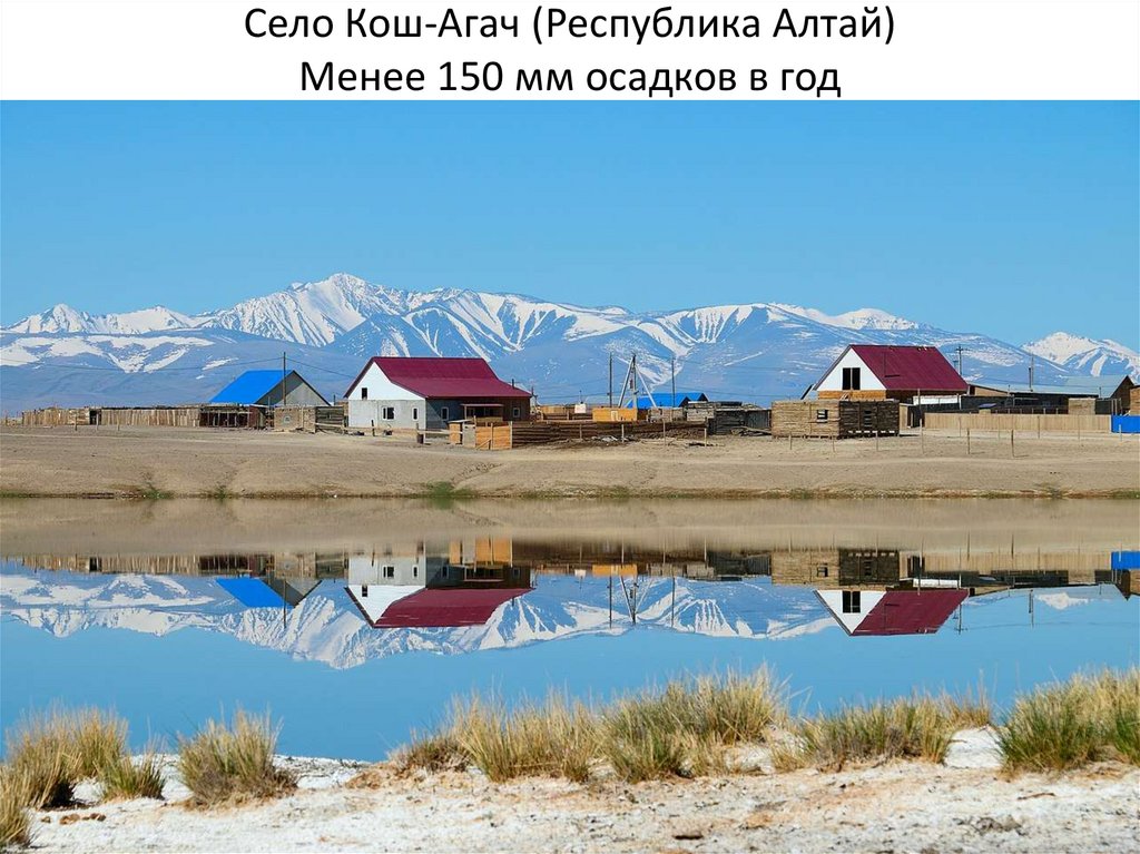 Село Кош-Агач (Республика Алтай)Менее 150 мм осадков в год