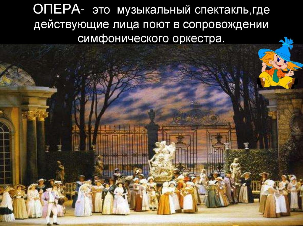 ОПЕРА- это музыкальный спектакль,гдедействующие лица поют в сопровождении