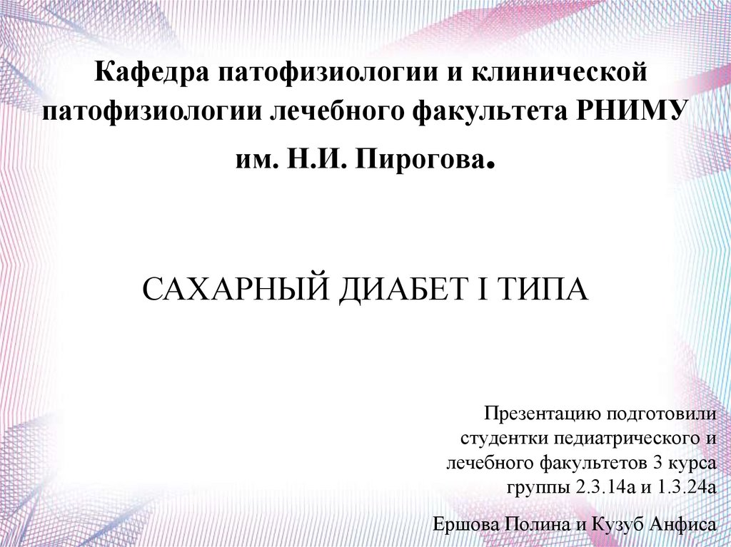 Кафедра патофизиологии и клиническойпатофизиологии лечебного факультета РНИМУ