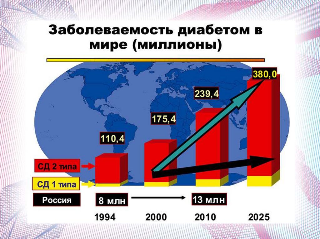 ОпределениеСахарный диабет – это группа метаболических заболеваний, характеризующихся развитием стойкой гипергликемии