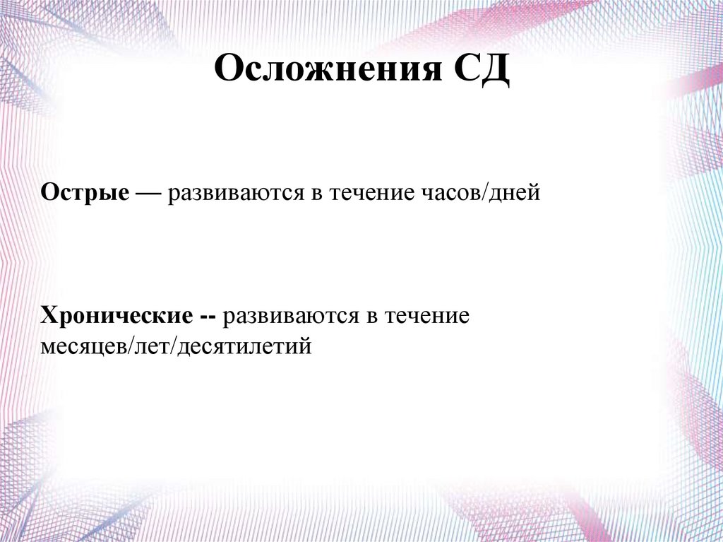 Осложнения СДОстрые — развиваются в течение часов/дней