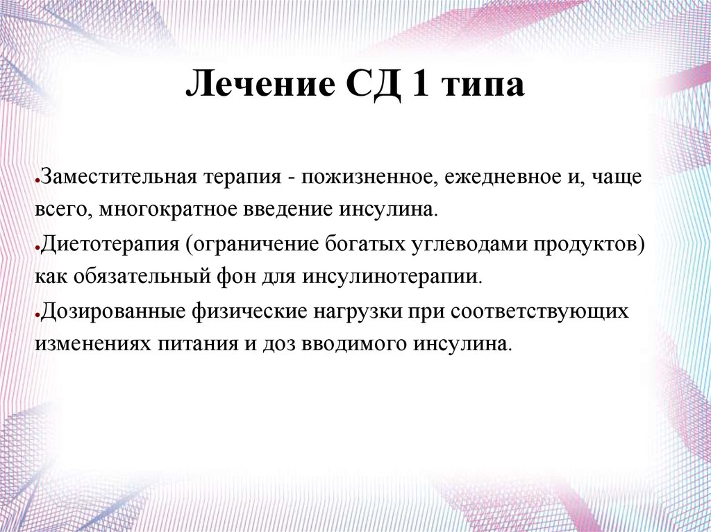 Лечение СД 1 типаЗаместительная терапия - пожизненное, ежедневное и, чаще