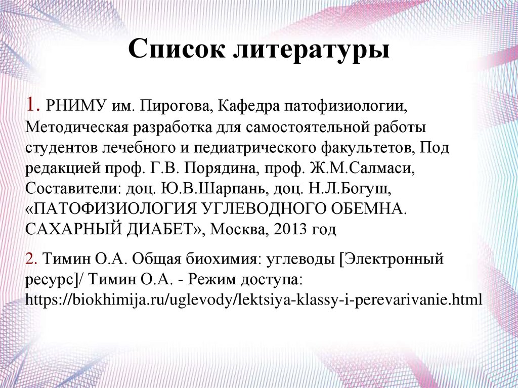 Список литературы1. РНИМУ им. Пирогова, Кафедра патофизиологии,