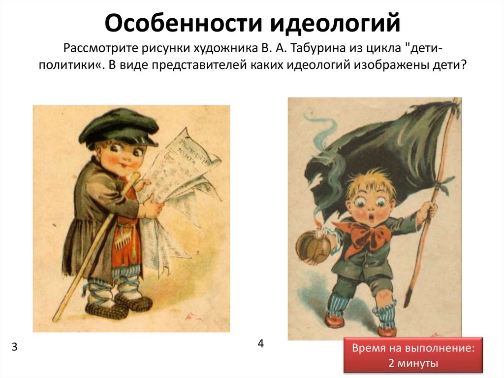 Особенности идеологийРассмотрите рисунки художника В. А. Табурина из цикла "детиполитики«. В виде представителей каких идеологий изображены дети?
