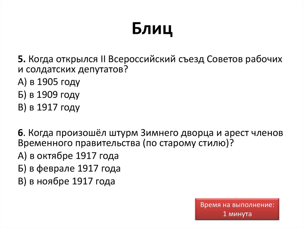 Блиц5. Когда открылся II Всероссийский съезд Советов рабочих