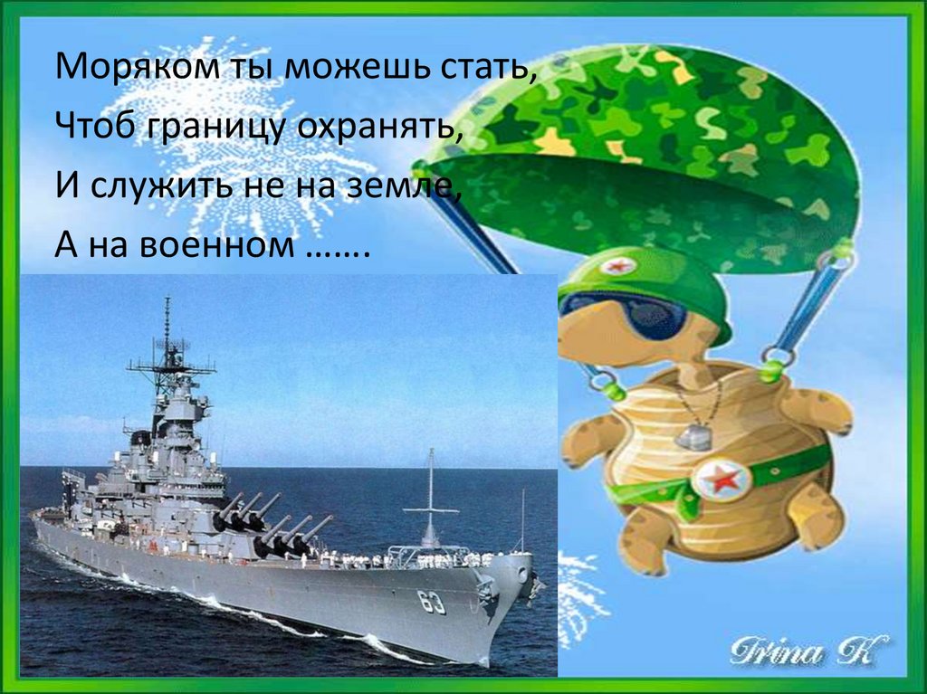 Моряком ты можешь стать,Чтоб границу охранять,