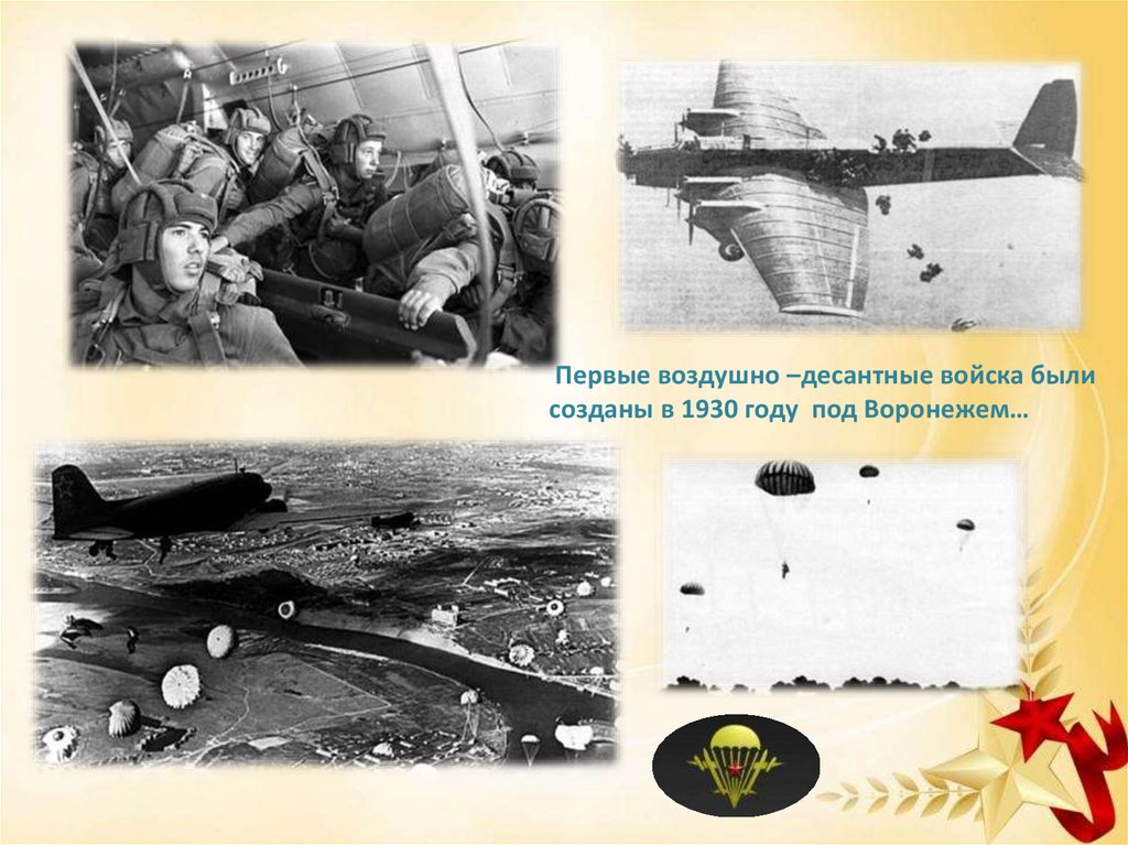 Первые воздушно –десантные войска былисозданы в 1930 году под Воронежем…