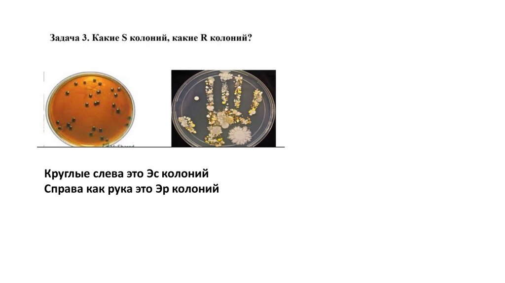 Круглые слева это Эс колонийСправа как рука это Эр колоний