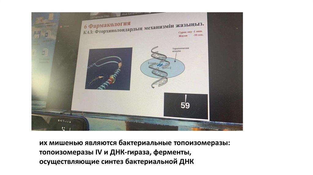 их мишенью являются бактериальные топоизомеразы:топоизомеразы IV и ДНК-гираза, ферменты,