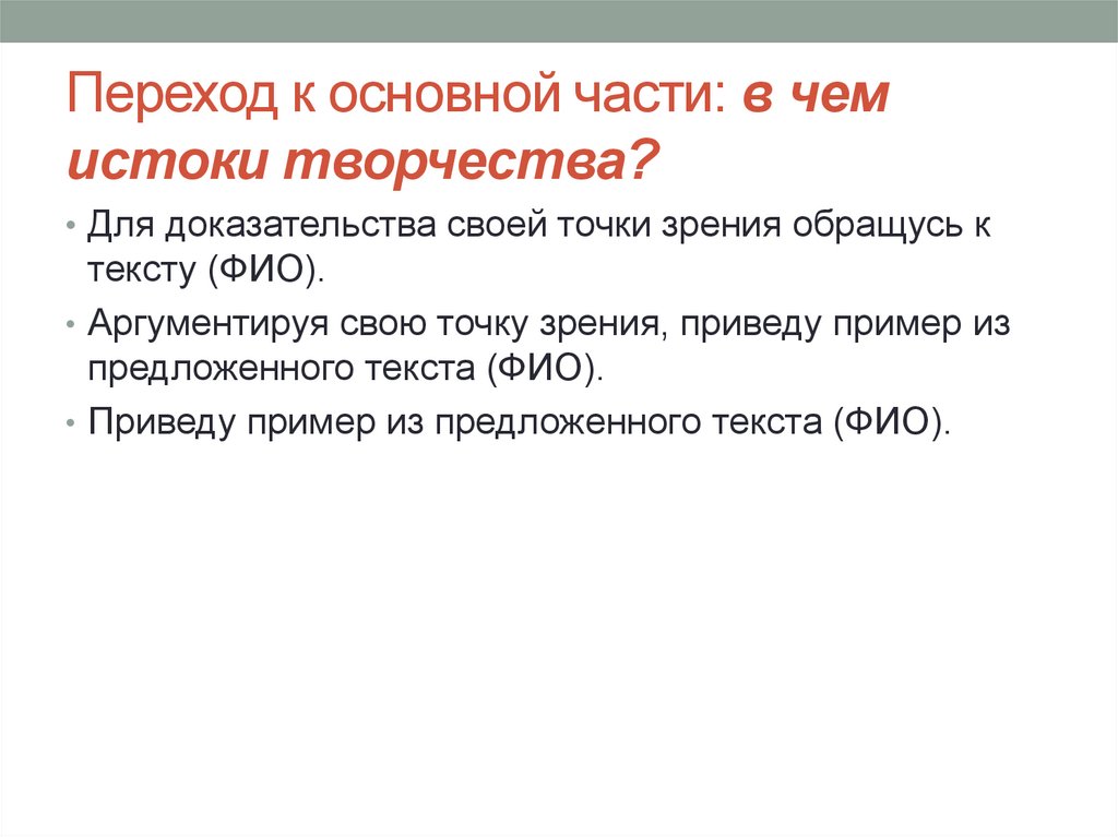 Переход к основной части: в чемистоки творчества?