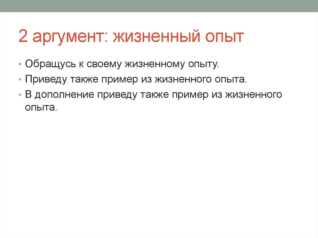 2 аргумент: жизненный опыт• Обращусь к своему жизненному опыту.