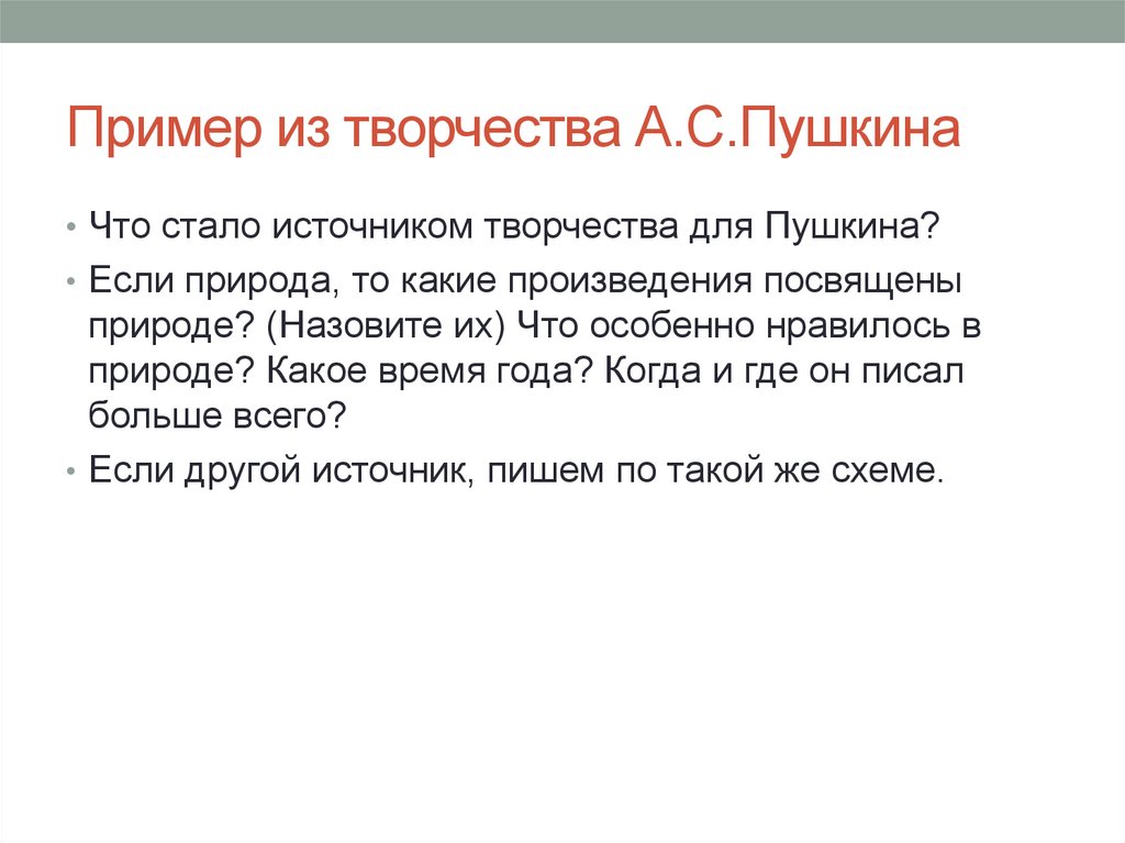 Пример из творчества А.С.Пушкина• Что стало источником творчества для Пушкина?