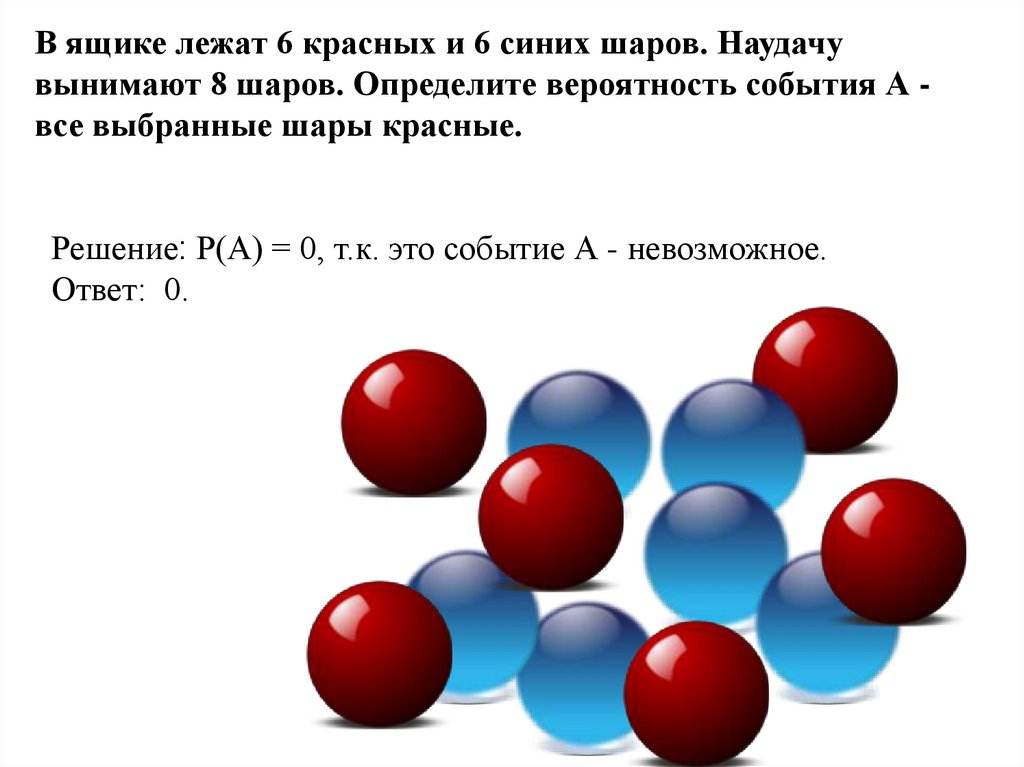 Решение: Р(А) = 0, т.к. это событие А - невозможное.
