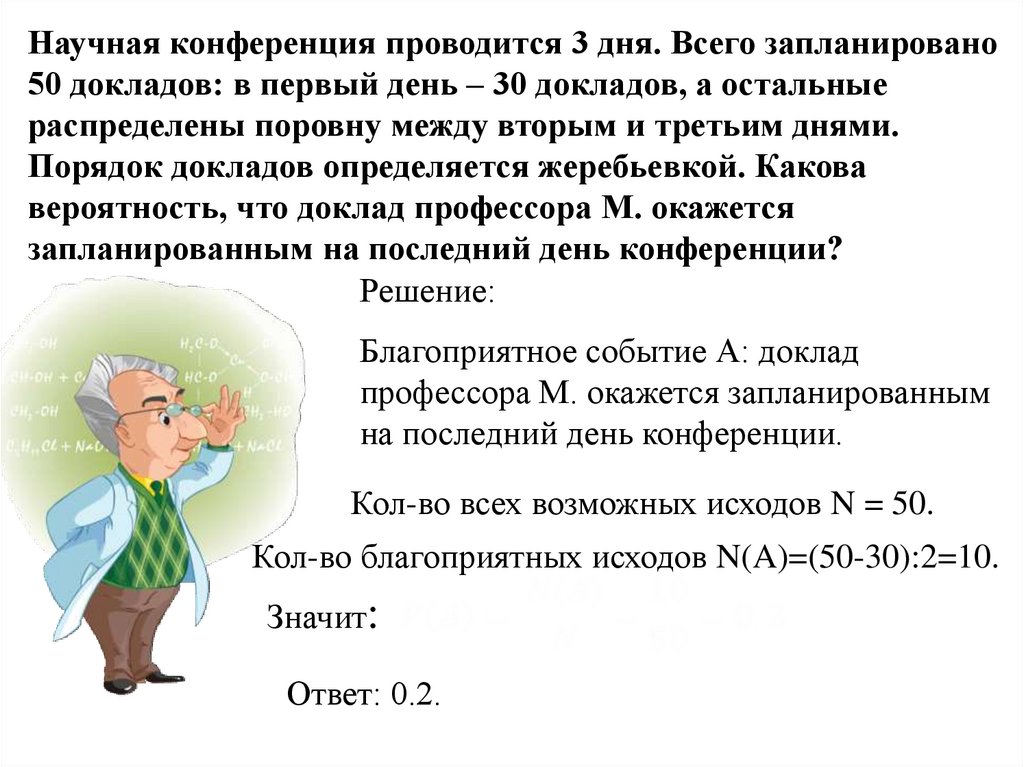 Кол-во благоприятных исходов N(A)=(50-30):2=10.