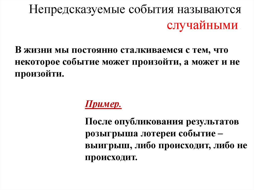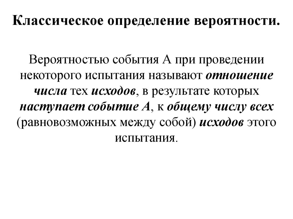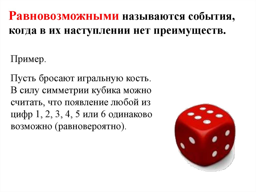 Равновозможными называются события,когда в их наступлении нет преимуществ.