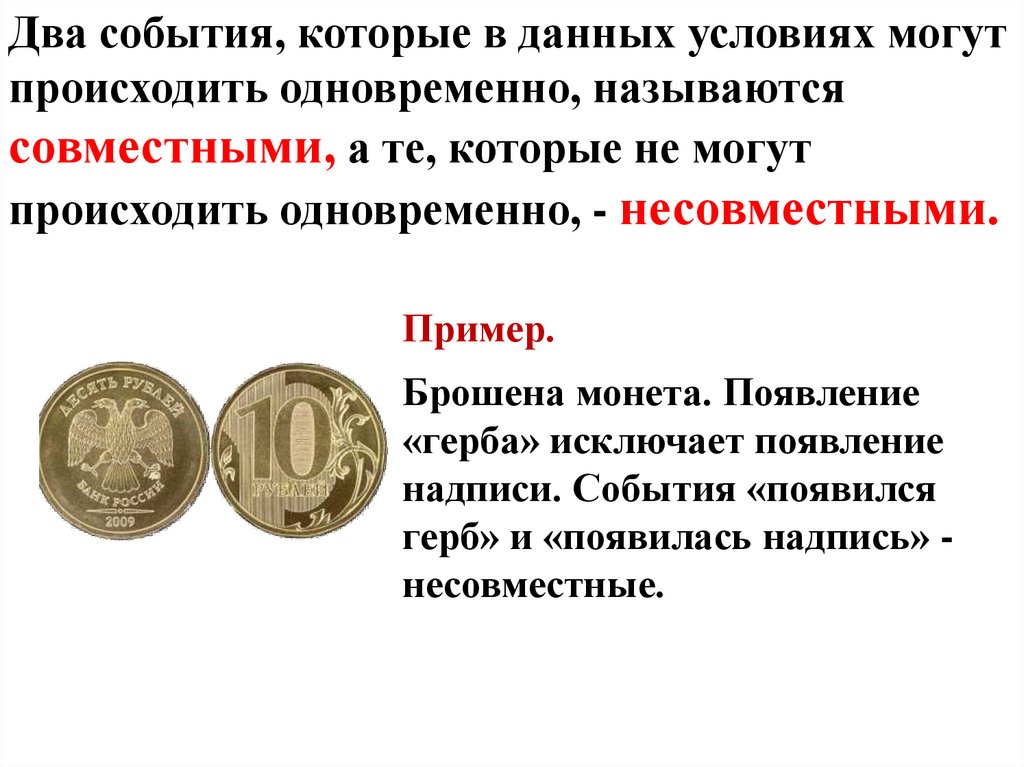 Два события, которые в данных условиях могутпроисходить одновременно, называются