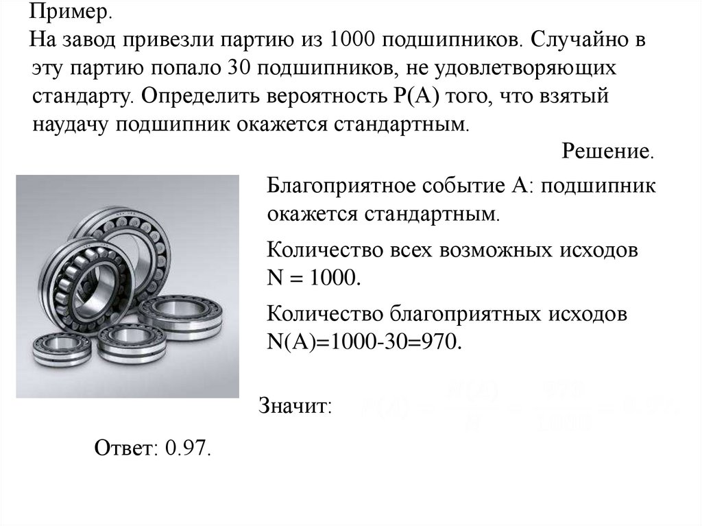 Пример.На завод привезли партию из 1000 подшипников. Случайно в