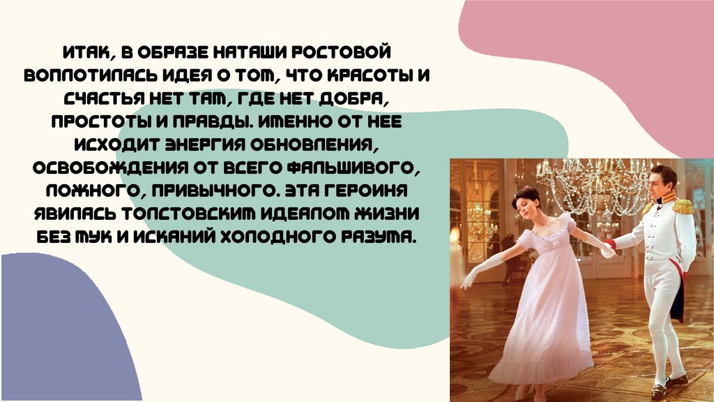 Итак, в образе Наташи Ростовойвоплотилась идея о том, что красоты и