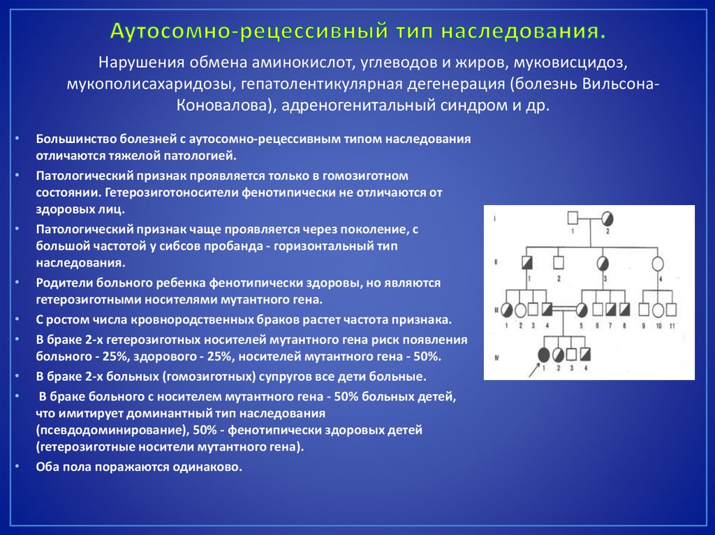 - гетерозиготность обоих родителей по одной паре аллелей при