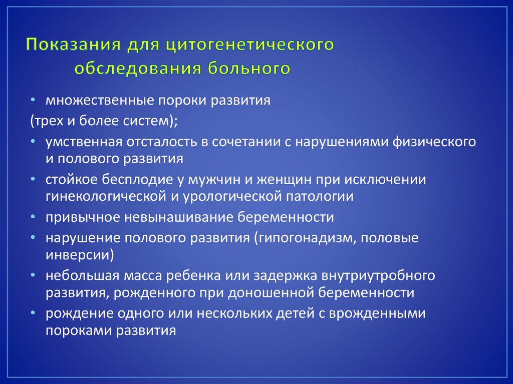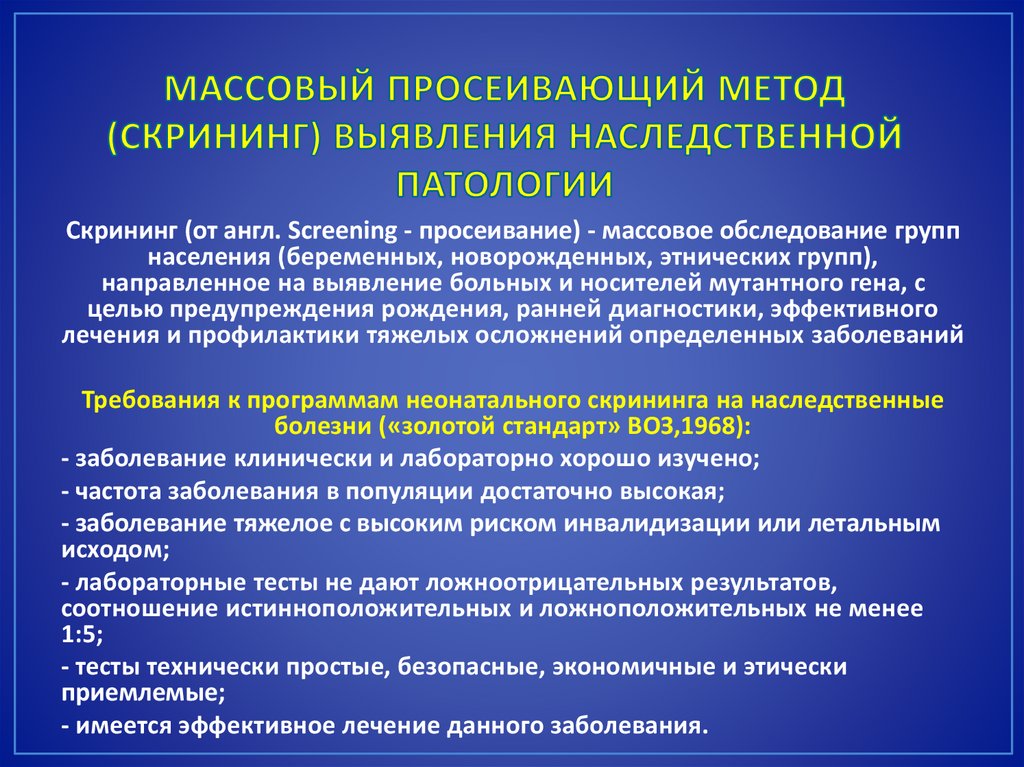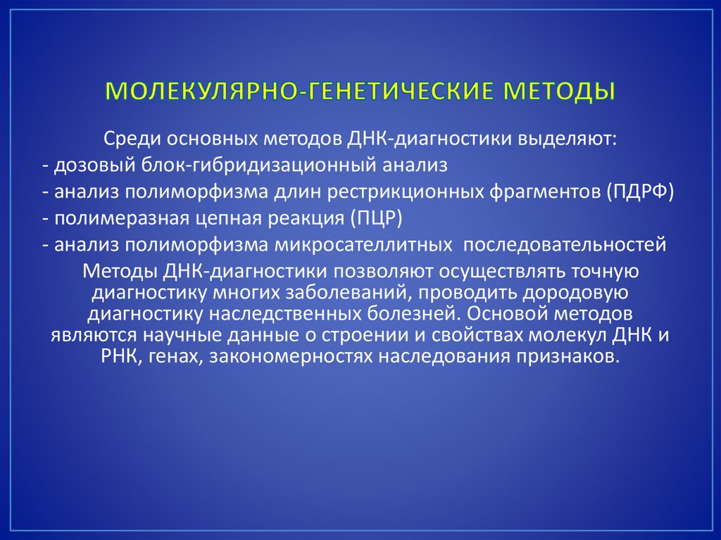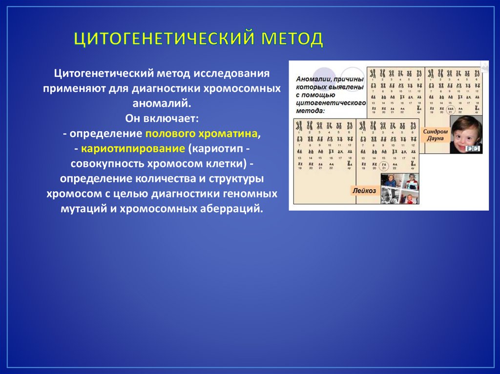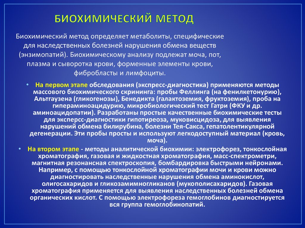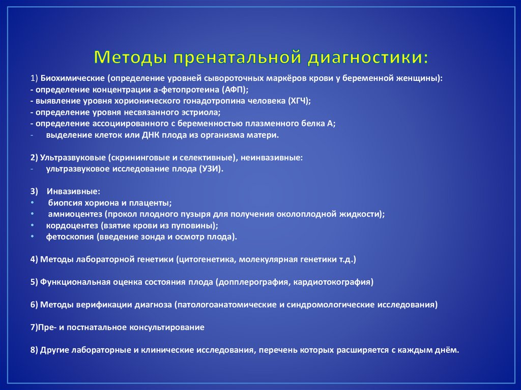 методы (цитогенетические, биохимические, молекулярногенетические).