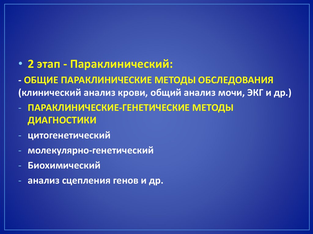 • 2 этап - Параклинический:- ОБЩИЕ ПАРАКЛИНИЧЕСКИЕ МЕТОДЫ ОБСЛЕДОВАНИЯ
