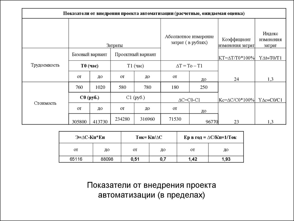 Показатели от внедрения проекта автоматизации (расчетные, ожидаемая оценка)Абсолютное измерение