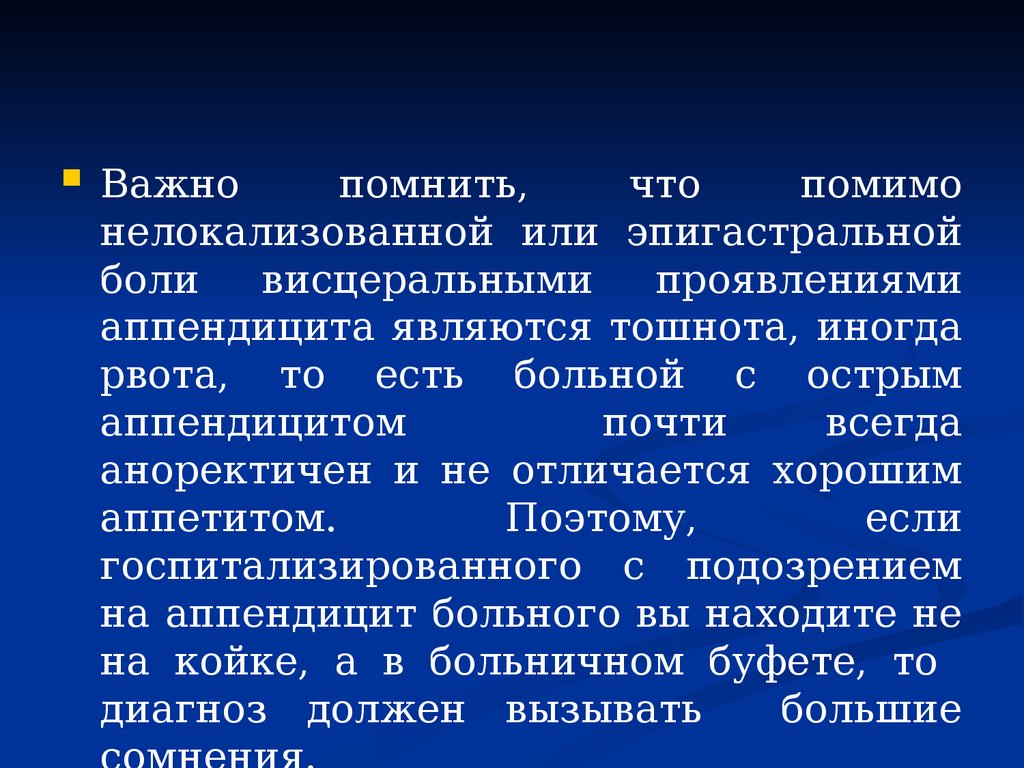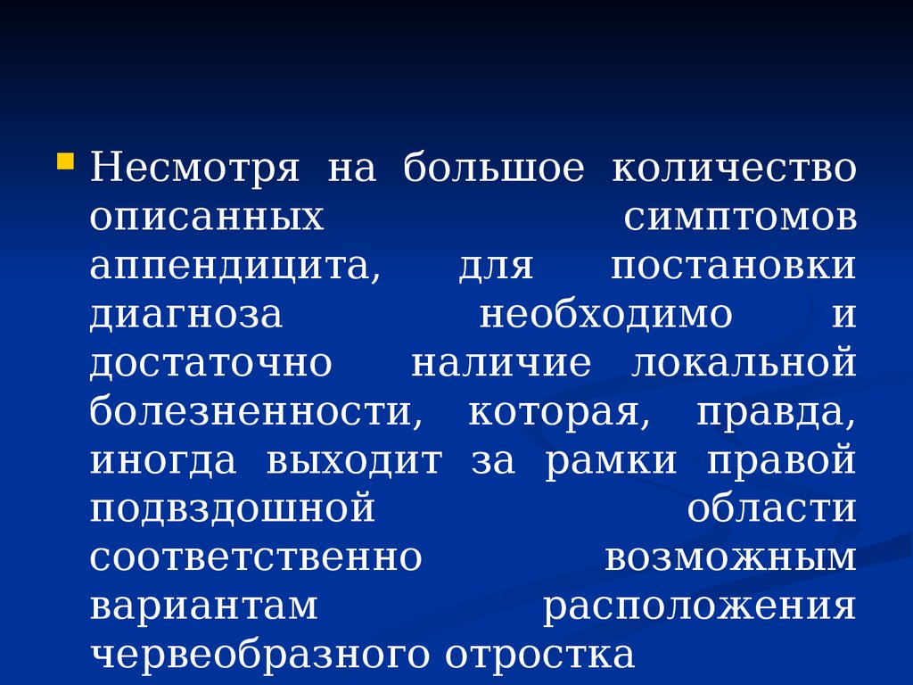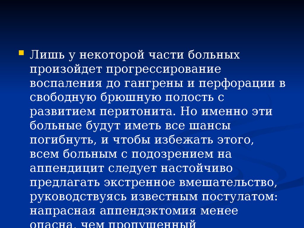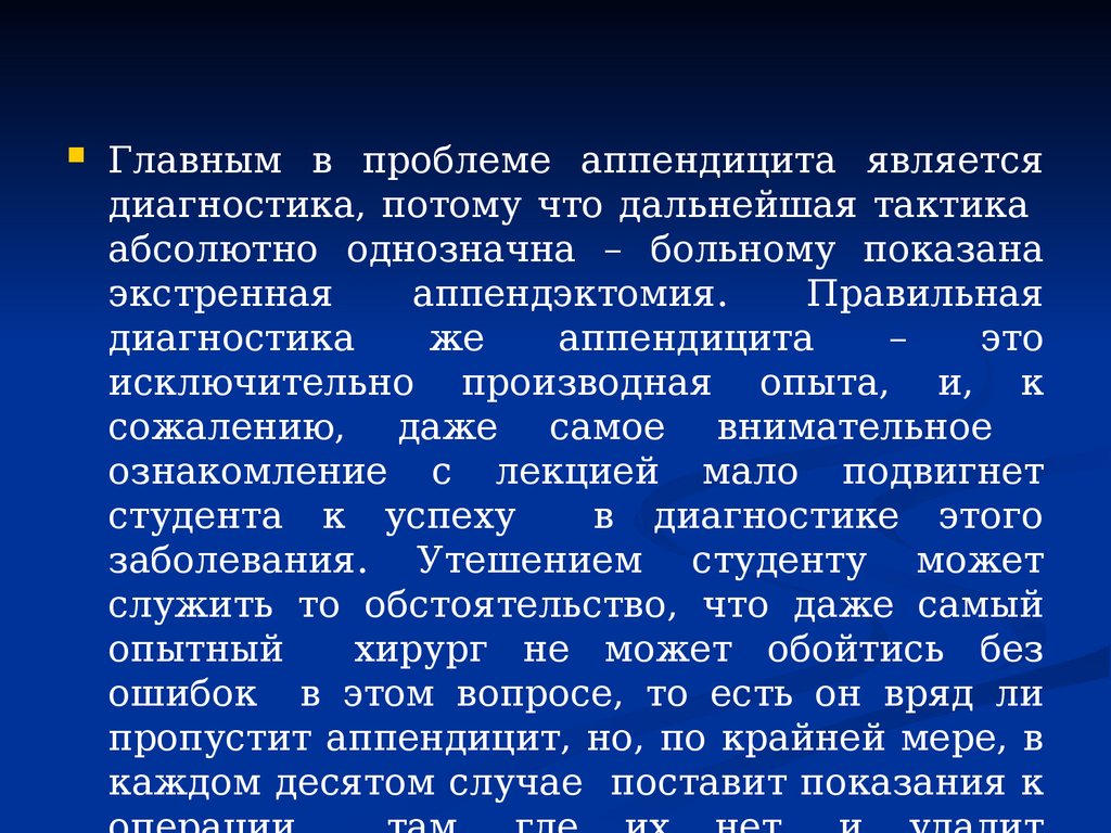 Главным в проблеме аппендицита являетсядиагностика, потому что дальнейшая тактика