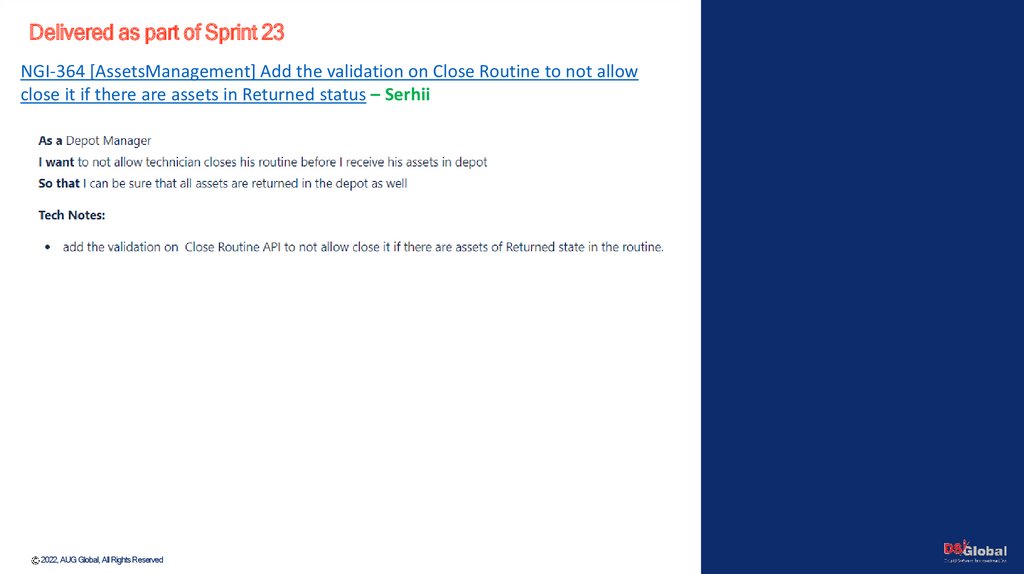 Delivered as part of Sprint 23NGI-364 [AssetsManagement] Add the validation on Close Routine to not allow