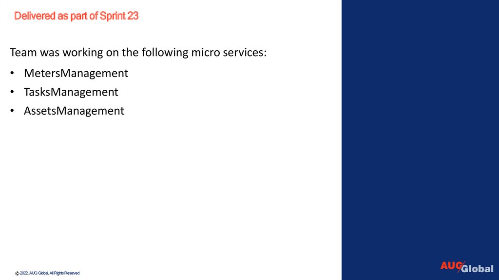 Delivered as part of Sprint 23Team was working on the following micro services: