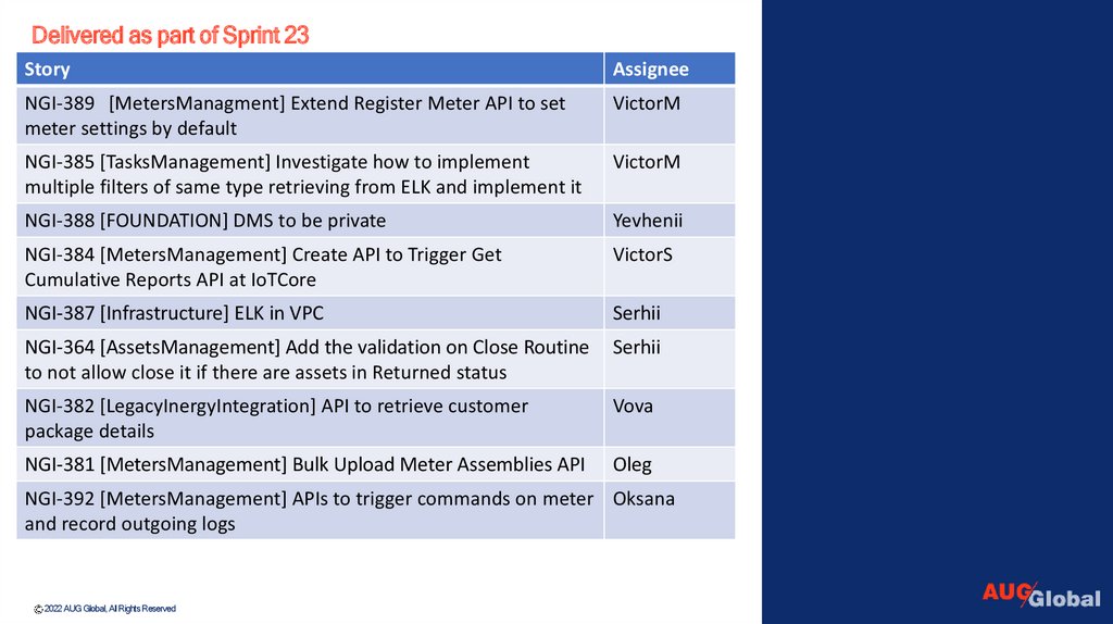 AUG GLOBALNGI – Zebra Sprint 23 - Showcase