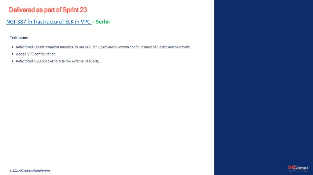 Delivered as part of Sprint 23NGI-387 [Infrastructure] ELK in VPC – Serhii