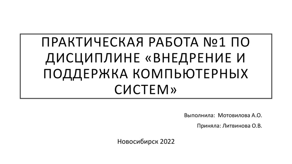 ПРАКТИЧЕСКАЯ РАБОТА №1 ПОДИСЦИПЛИНЕ «ВНЕДРЕНИЕ И