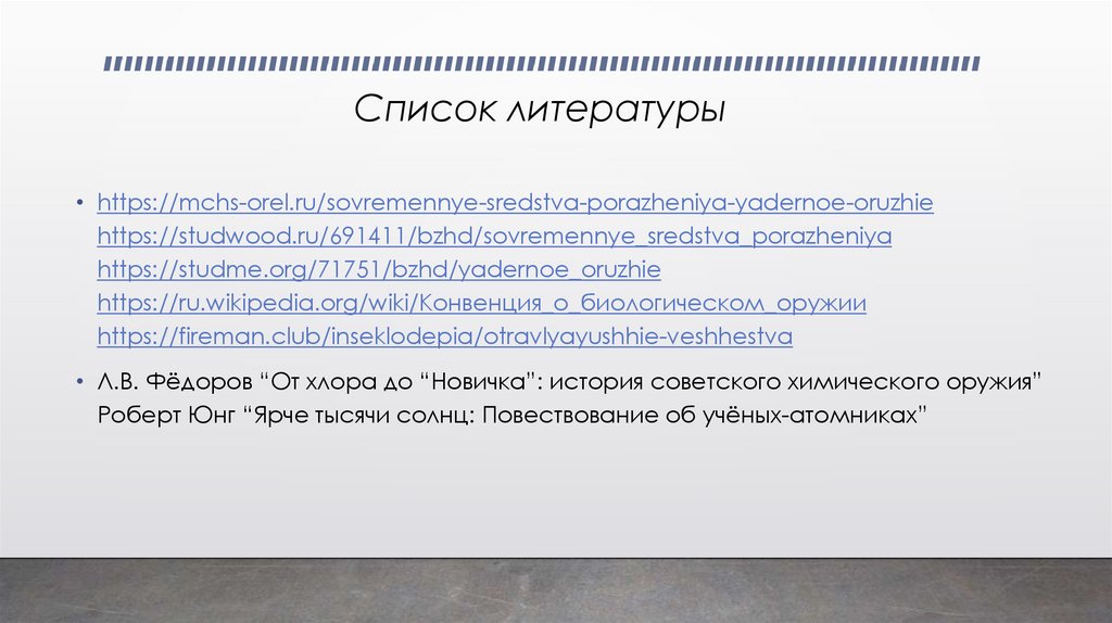 Список литературы• https://mchs-orel.ru/sovremennye-sredstva-porazheniya-yadernoe-oruzhie