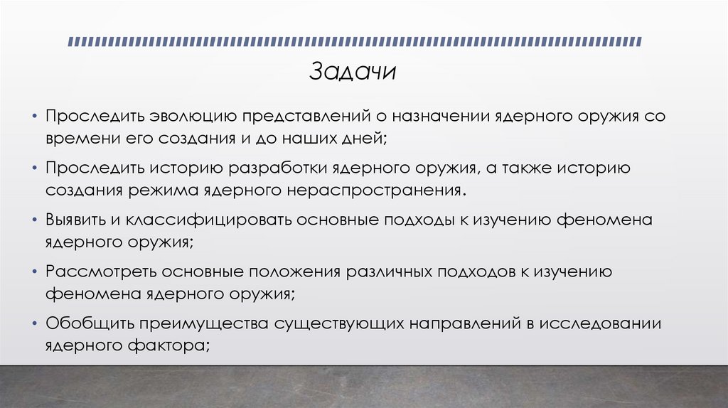 Задачи• Проследить эволюцию представлений о назначении ядерного оружия со