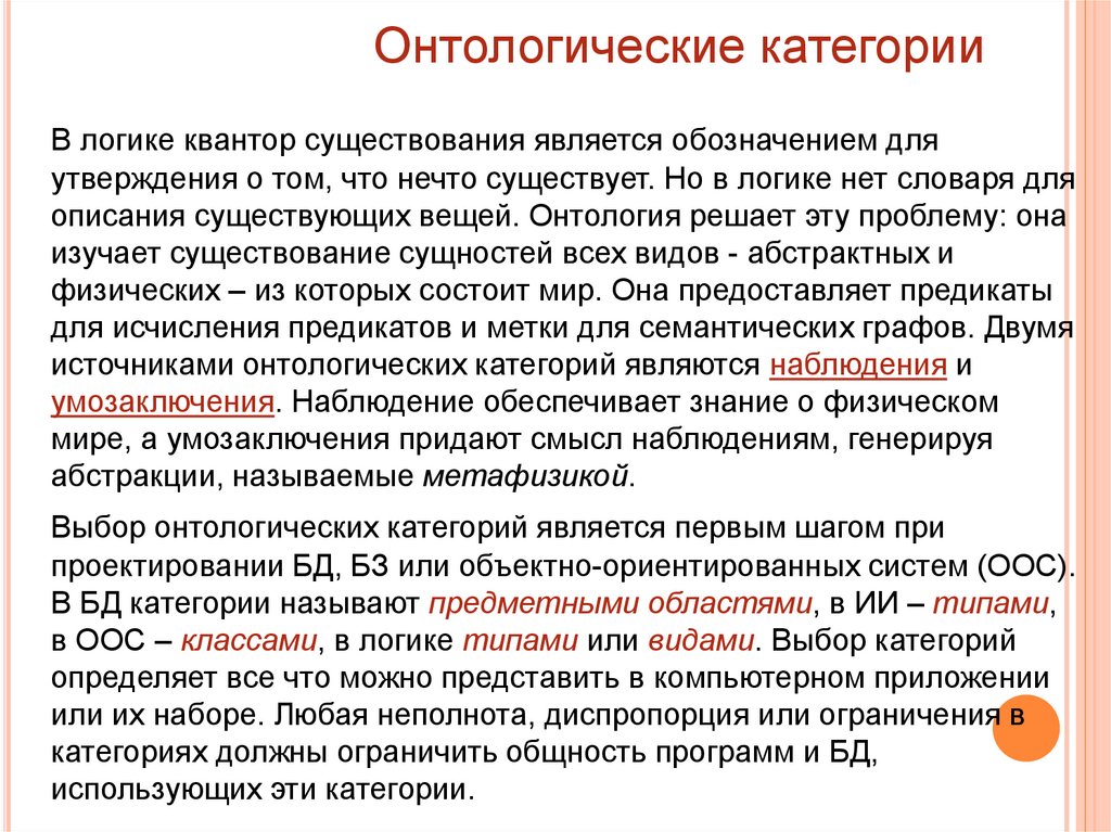 Наряду с классификацией вещей, онтологические категории обеспечивают крючки на