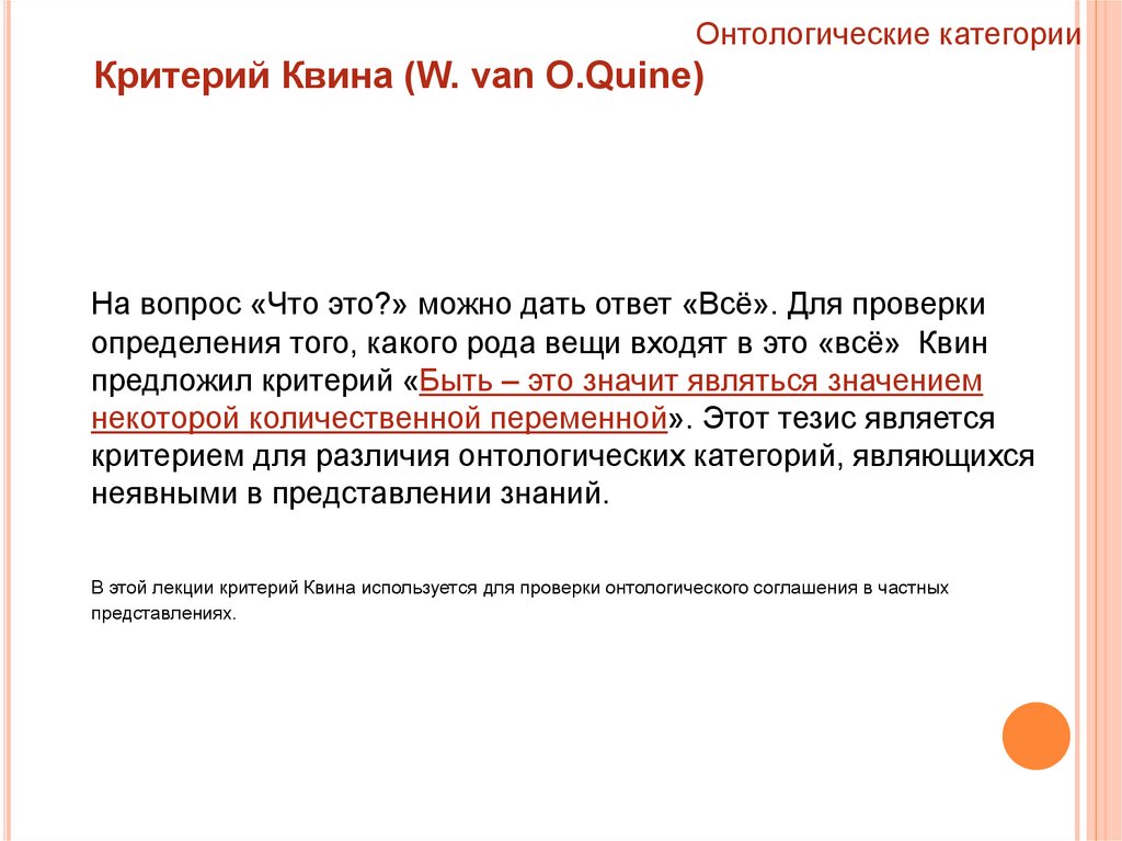 Онтологические категорииКритерий Квина (W. van O.Quine)
