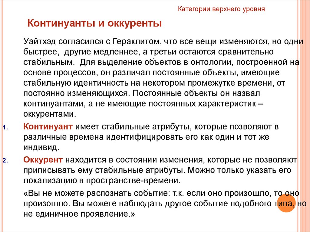 Категории Оккурентов характеризуются предикатом который зависит от времени или