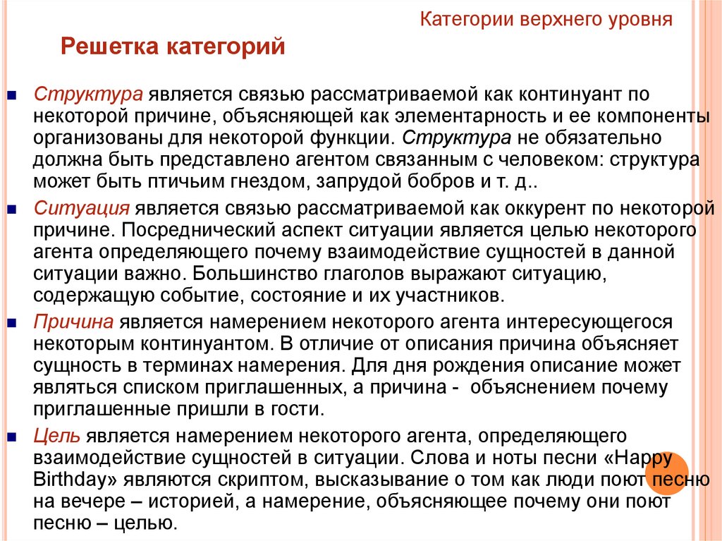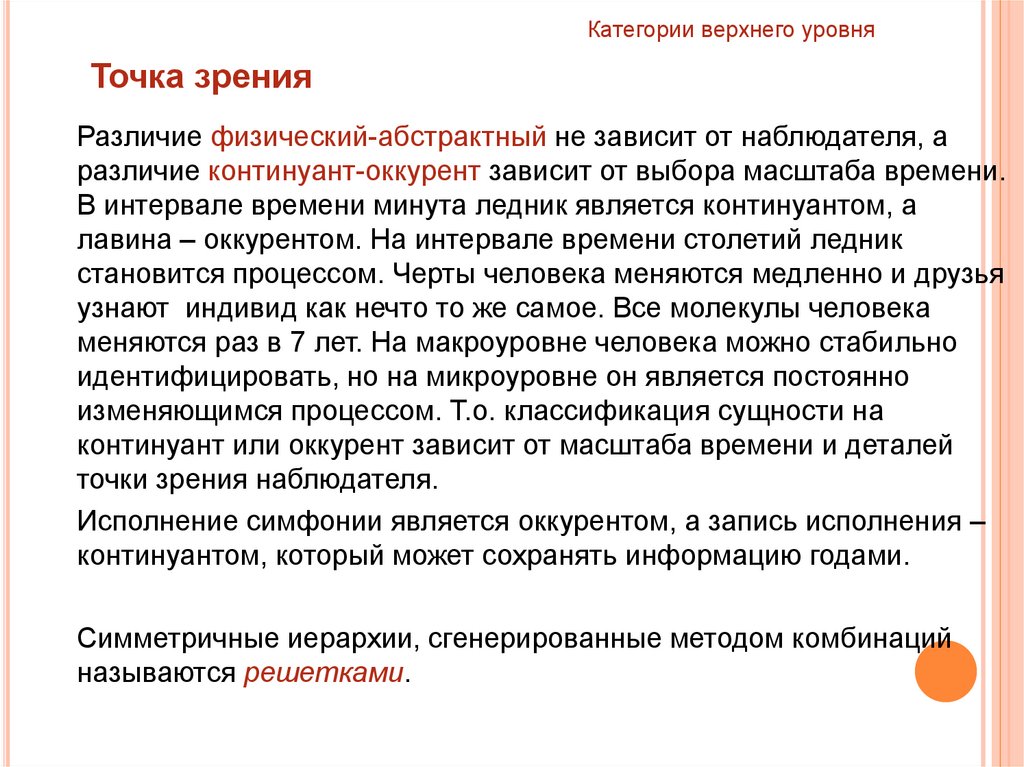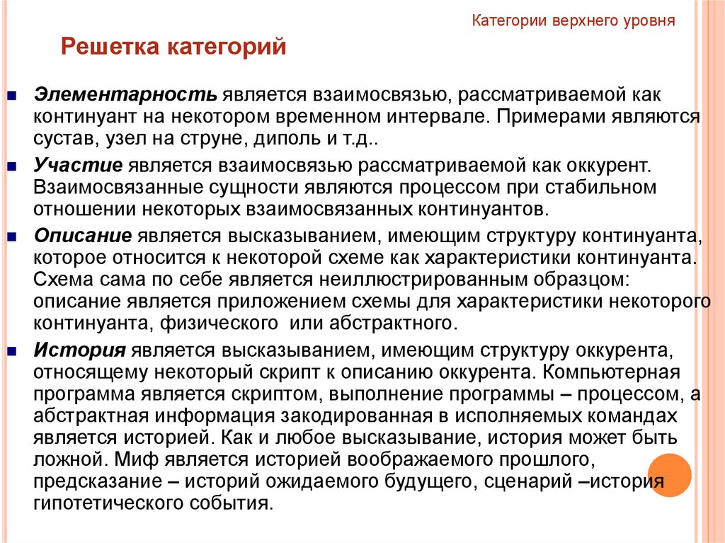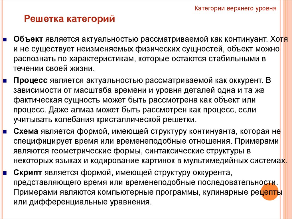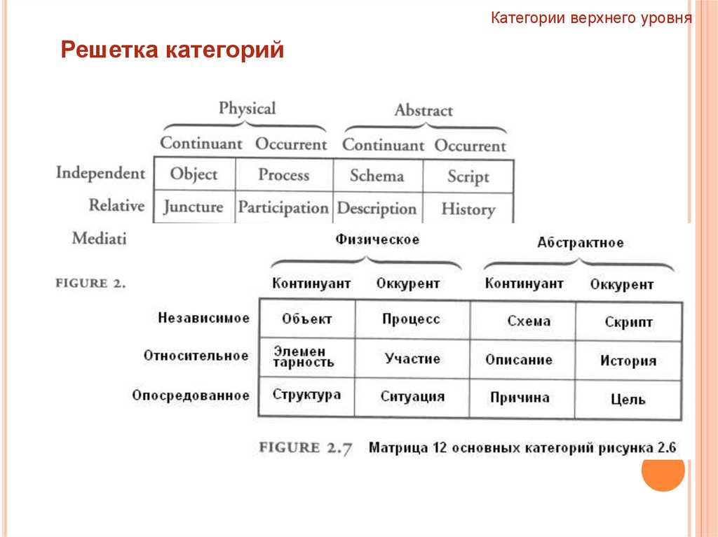 других категорий верхнего уровня и их подтипов зависят от точки зрения описателя: