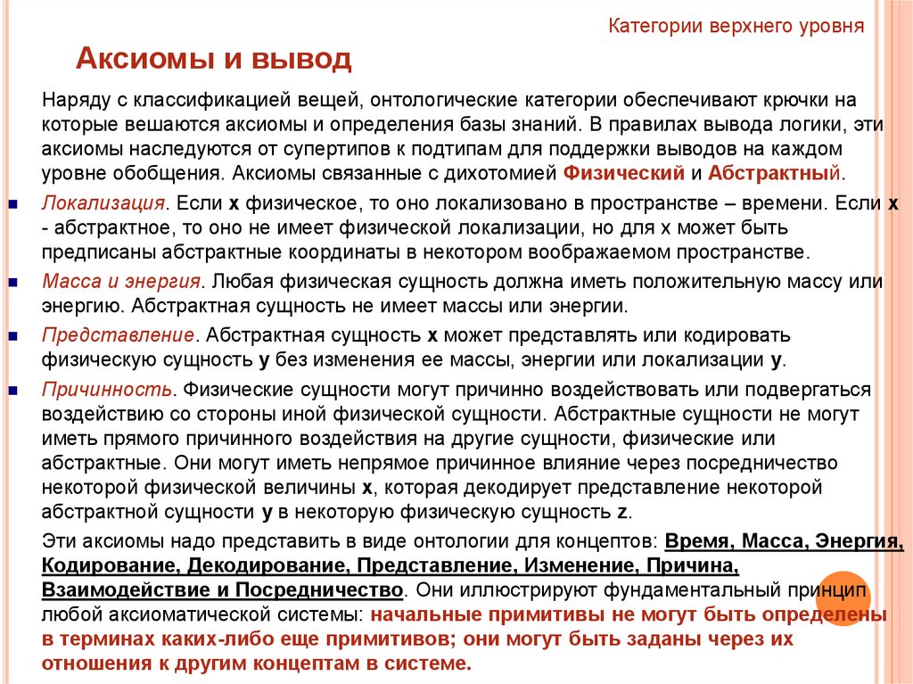 уровне обобщения. Аксиомы связанные с дихотомией Физический и Абстрактный.