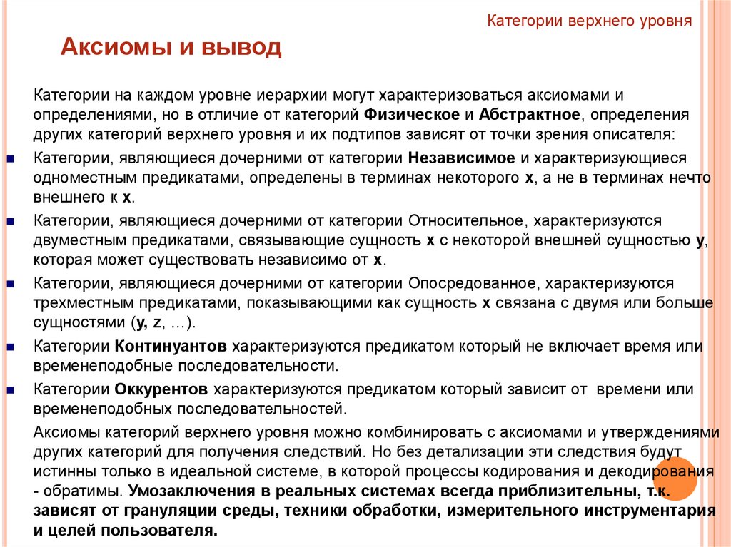Категории на каждом уровне иерархии могут характеризоваться аксиомами и