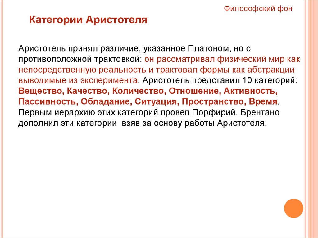 выводимые из эксперимента. Аристотель представил 10 категорий: