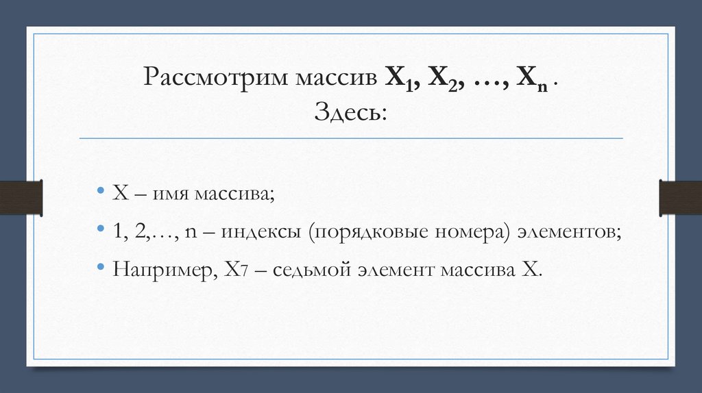 Рассмотрим массив Х1, Х2, …, Хn .Здесь: