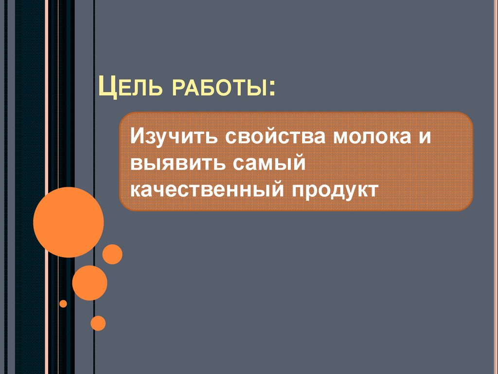 ЦЕЛЬ РАБОТЫ:Изучить свойства молока и
