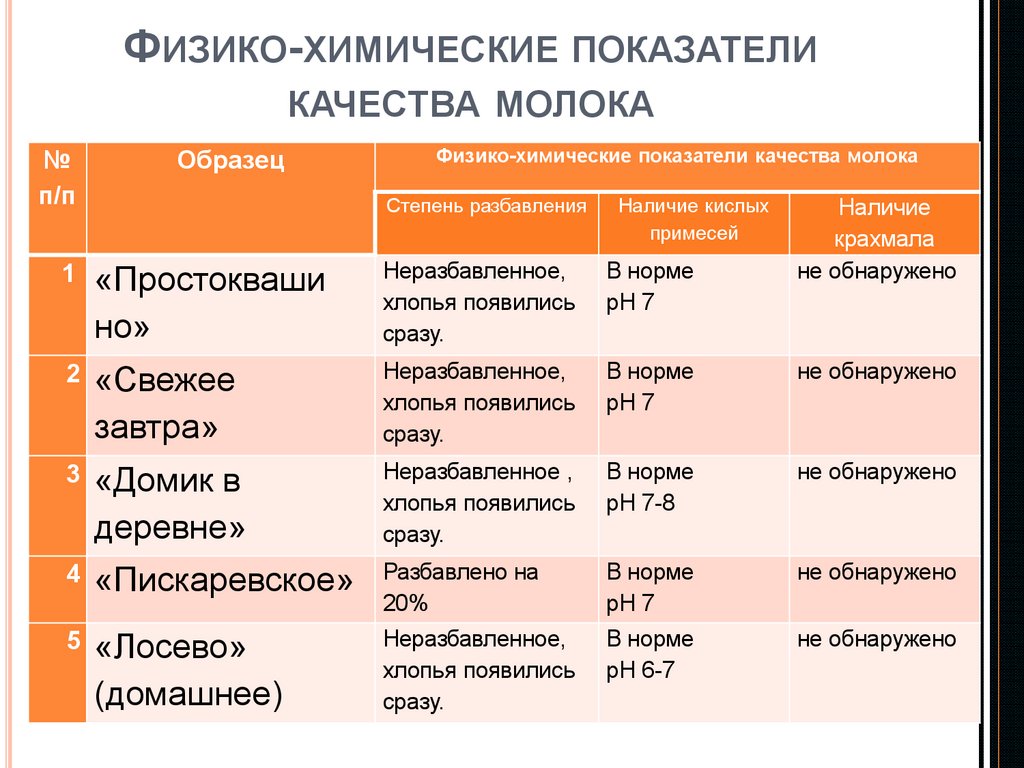 ФИЗИКО-ХИМИЧЕСКИЕ ПОКАЗАТЕЛИКАЧЕСТВА МОЛОКА