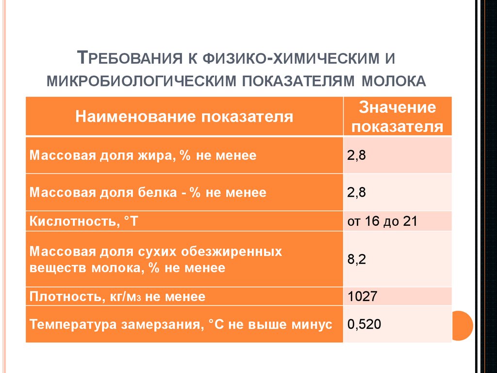 ТРЕБОВАНИЯ К ФИЗИКО-ХИМИЧЕСКИМ ИМИКРОБИОЛОГИЧЕСКИМ ПОКАЗАТЕЛЯМ МОЛОКА