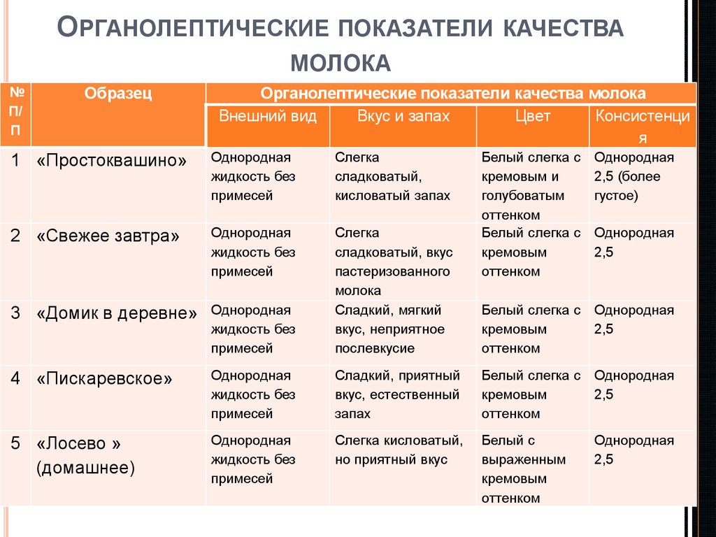 ОРГАНОЛЕПТИЧЕСКИЕ ПОКАЗАТЕЛИ КАЧЕСТВАМОЛОКА